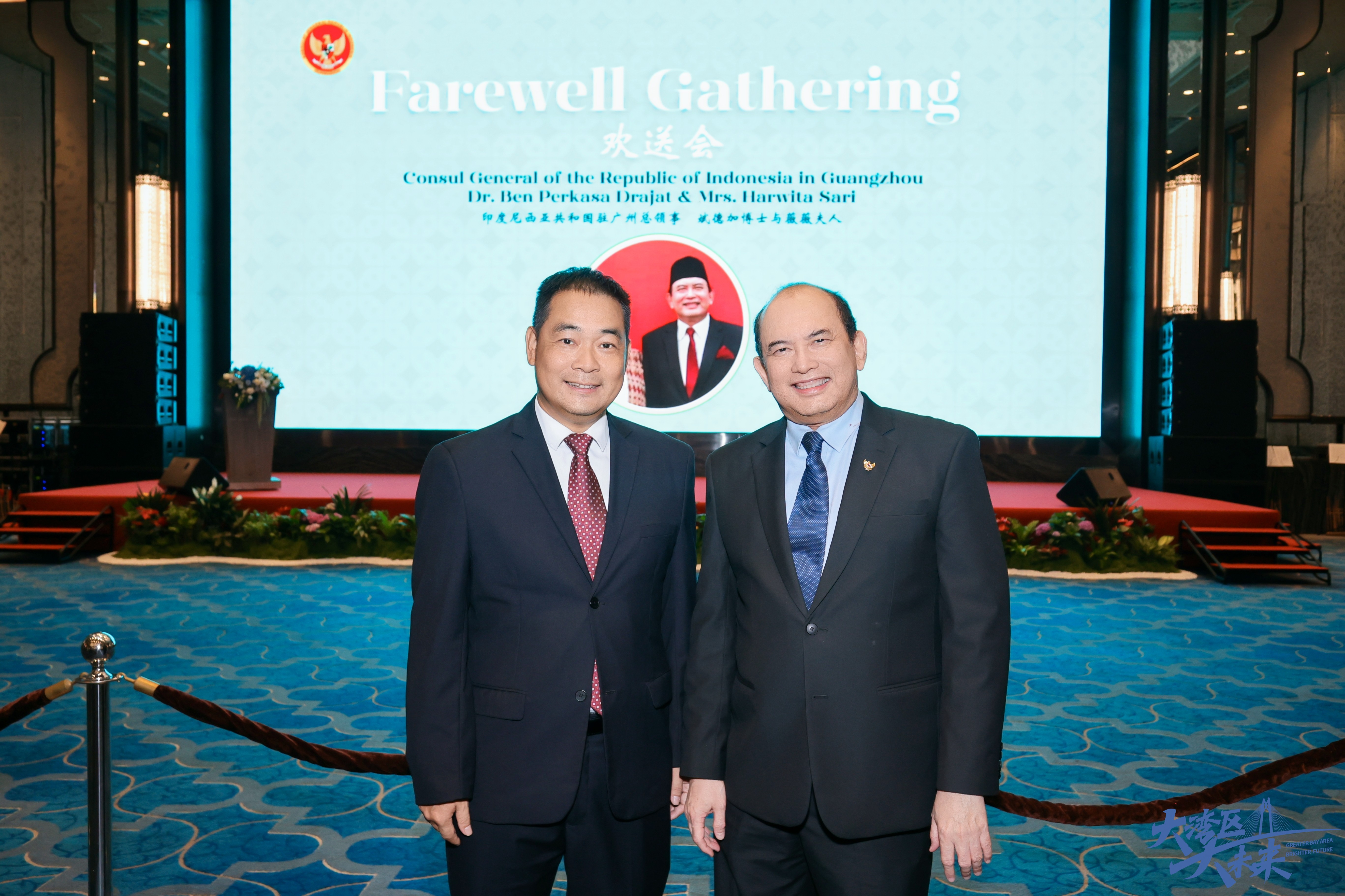 - 梁松寿理事长出席印尼驻广州总领事馆总领事斌德加博士和夫人微微女士的离任欢送晚宴